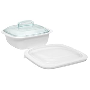 With a glass lid for baking and a plastic one for storage, this SimplyLite casserole is a great choice for everyday recipes. Made in the U.S.A., it holds 1-1/2 quarts and nests for storage with other SimplyLite dishes. CorningWare also makes a similar casserole in a 2-1/2-quart size as well as casserole sets with serving cradles.